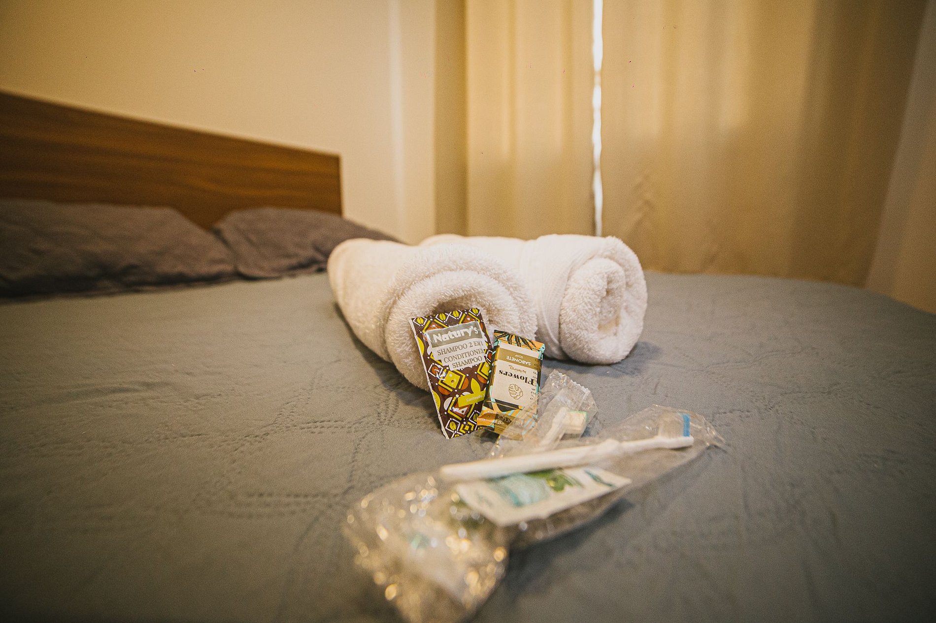 Caso esqueça sua escova de dente, shampoo e condicionador temos tambem.