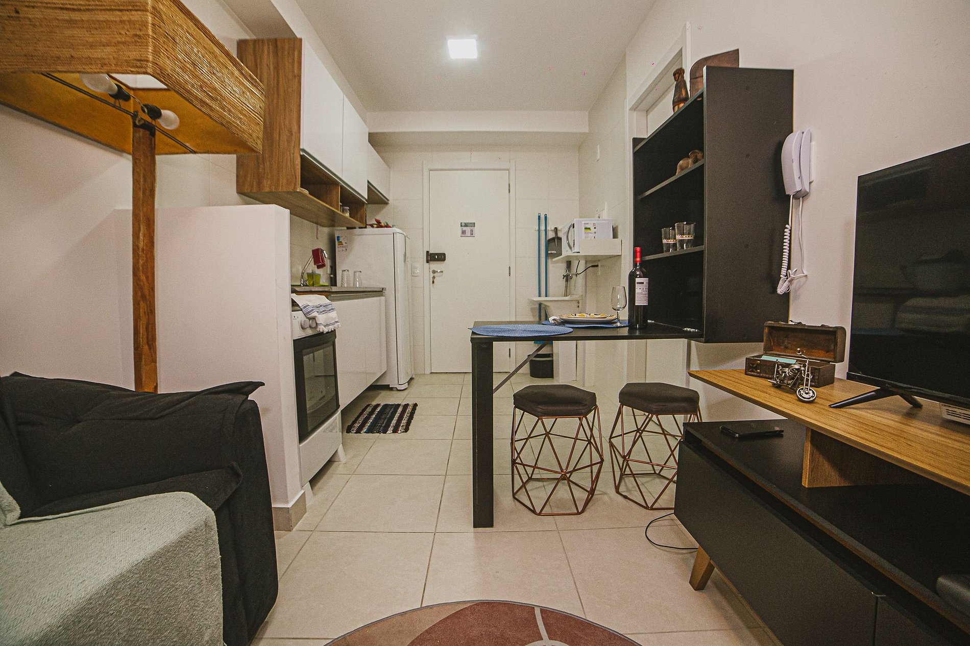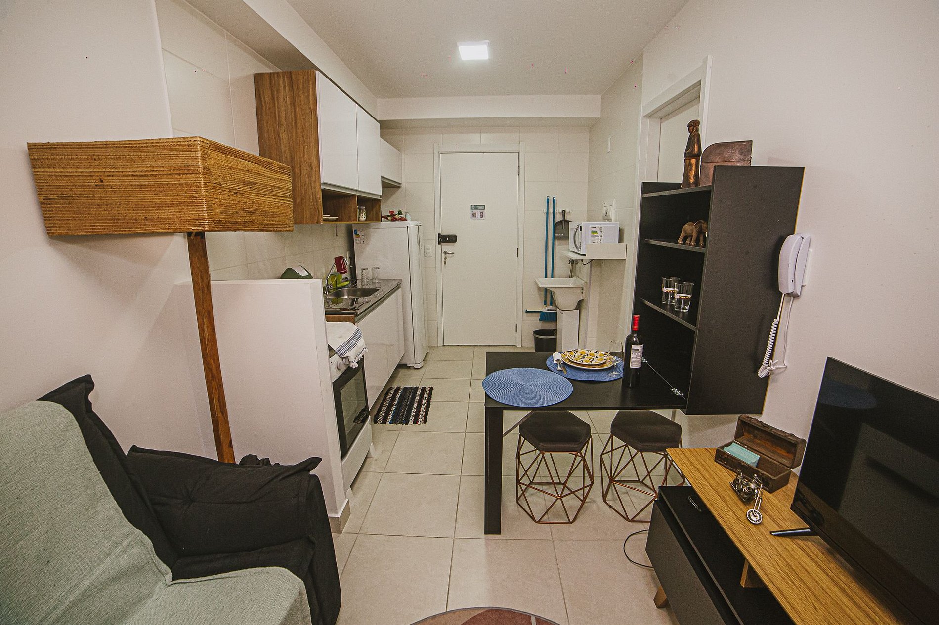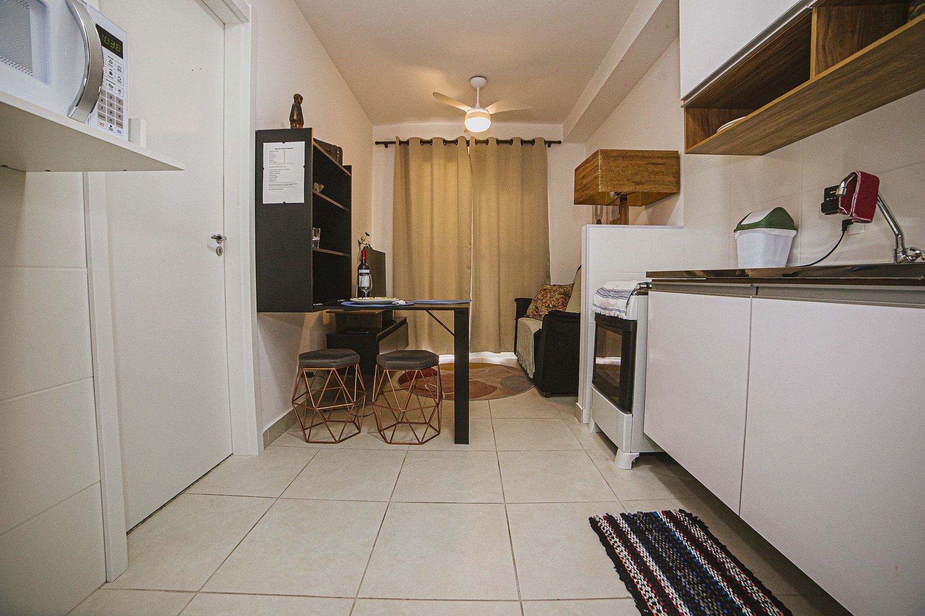 CHECKIN 15H. CHECK OUT 11H. Nosso espaço conta com Cozinha Completa, Sala com um sofá cama Queen size maravilhoso, TV de tela plana onde podem acessar diversos streamings com suas senhas, 1 suite com cama de casal, armário e banheiro completo com um chuveiro de água forte e aquecida. Internet ultra rápida (1 Gb). Ventilador de teto em todos ambientes. Oferecemos ammenities de banho, secador de cabelo, ferro de passar roupa. Itens de Minibar à venda para sua comodidade. TUDO PARA VOCÊ SE SENTIR O MAIS PRÓXIMO DA SUA CASA!!